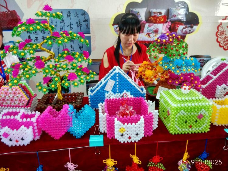 吴文罡副市长来到山阳展区,对各种各样的串珠非常感兴趣,认为手工艺创意的空间很大,鼓励大家要在创意和实用上下功夫,并现场花了80元钱买了一件插放电视遥控器的小盒子。现场气氛热闹活跃。